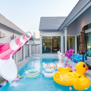 สระว่ายน้ำส่วนตัวระบบเกลือขนาด 3*9 m หัวพ่นจากุชชี่ พร้อมสระเด็ก