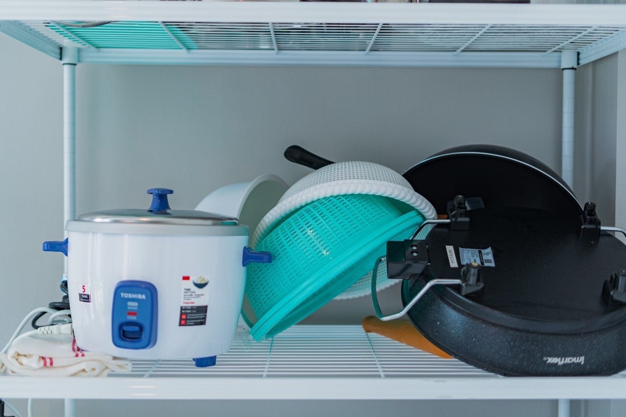 ห้องครัว พร้อมอุปกรณ์ครัวครบครัน เตาแก๊ส ไมโครเวฟ ตู้เย็น หม้อหุงข้าว เครื่องปั้น กาน้ำร้อน เครื่องปิ้งขนมปัง ครก เขียง มีด แก้ว จาน-ชาม กระติกน้ำแข็ง ถังน้ำแข็ง