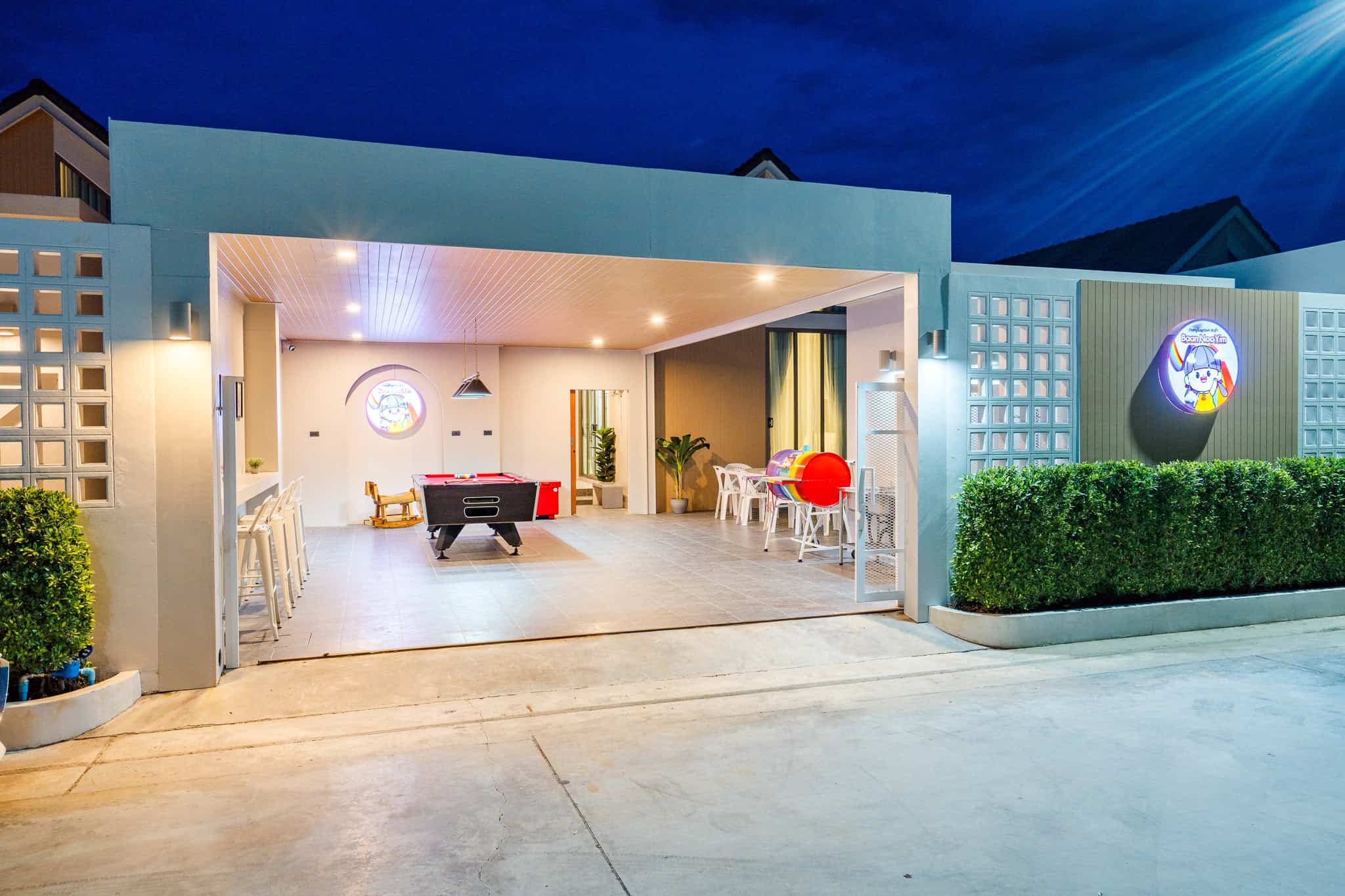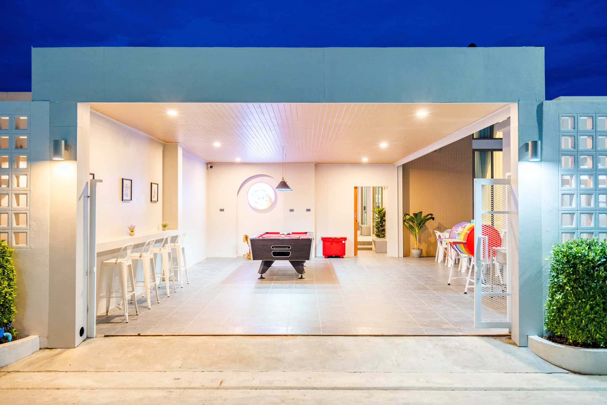 มีโซนปาร์ตี้ทั้งในตัวบ้าน และริมสระว่ายน้ำ อุปกรณ์เครื่องครัวครบครัน