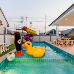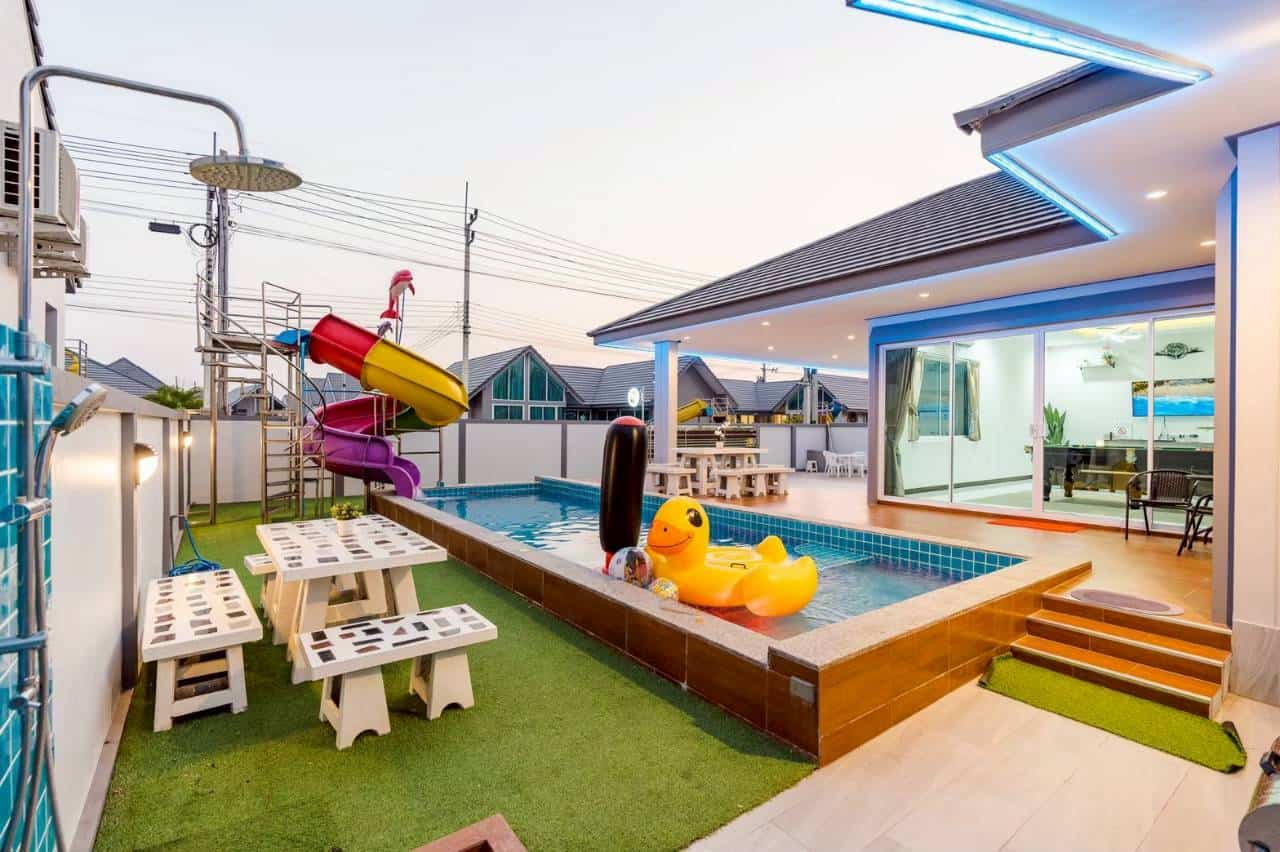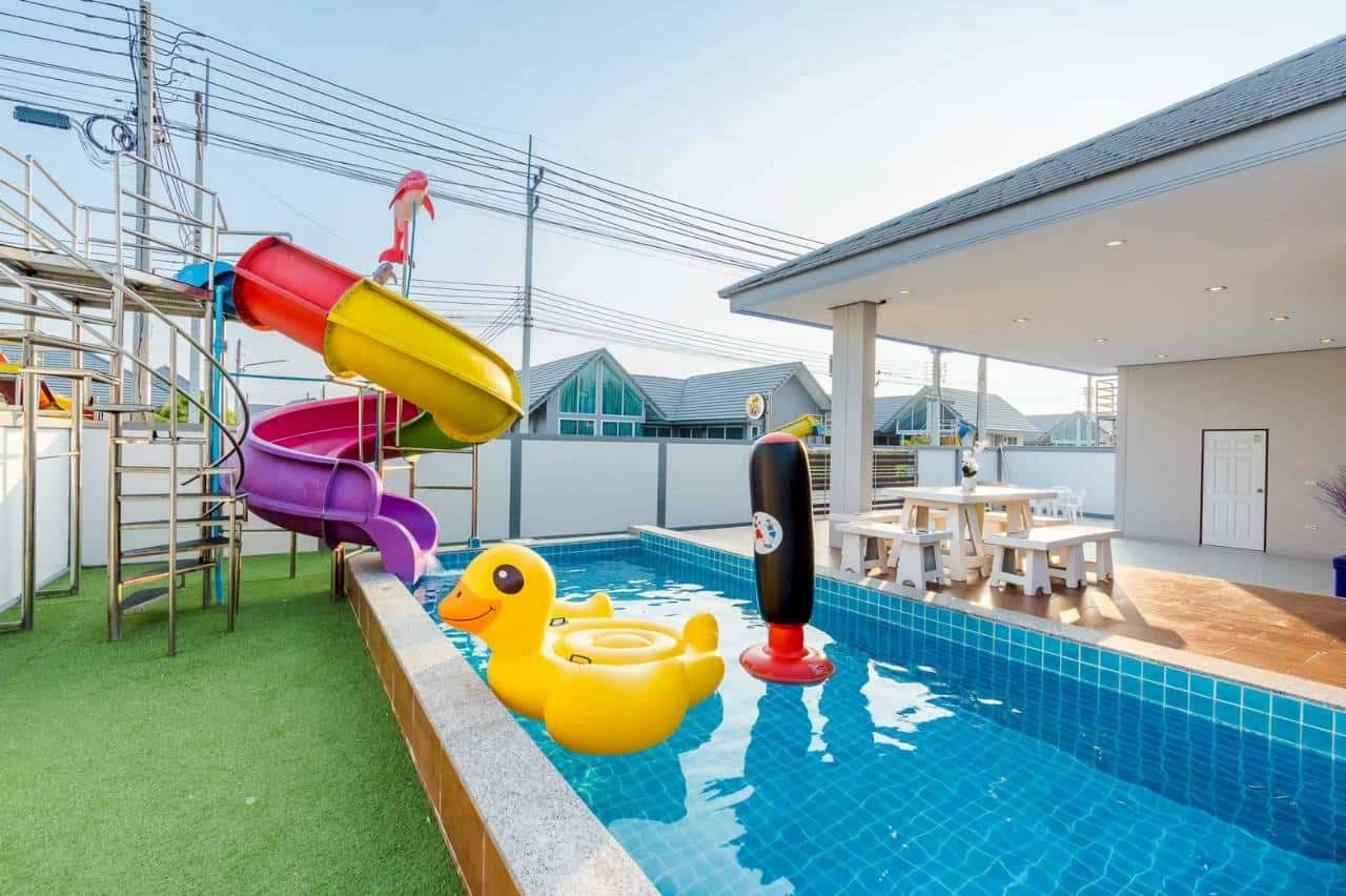 บ้านไอติม ชะอำ พูลวิลล่า บ้านพักใกล้ ทะเล สไตล์บ้านพักตากอากาศ บรรยากาศสุดฟิน สไลด์เดอร์สุดมัน สระว่ายน้ำเฉพาะเรา เหมาะสำหรับจัดปาร์ตี้ ปิ้งย่างกับครอบครัว หรือแฮงค์เอ้าท์กับเพื่อนๆ แบบส่วนตัว