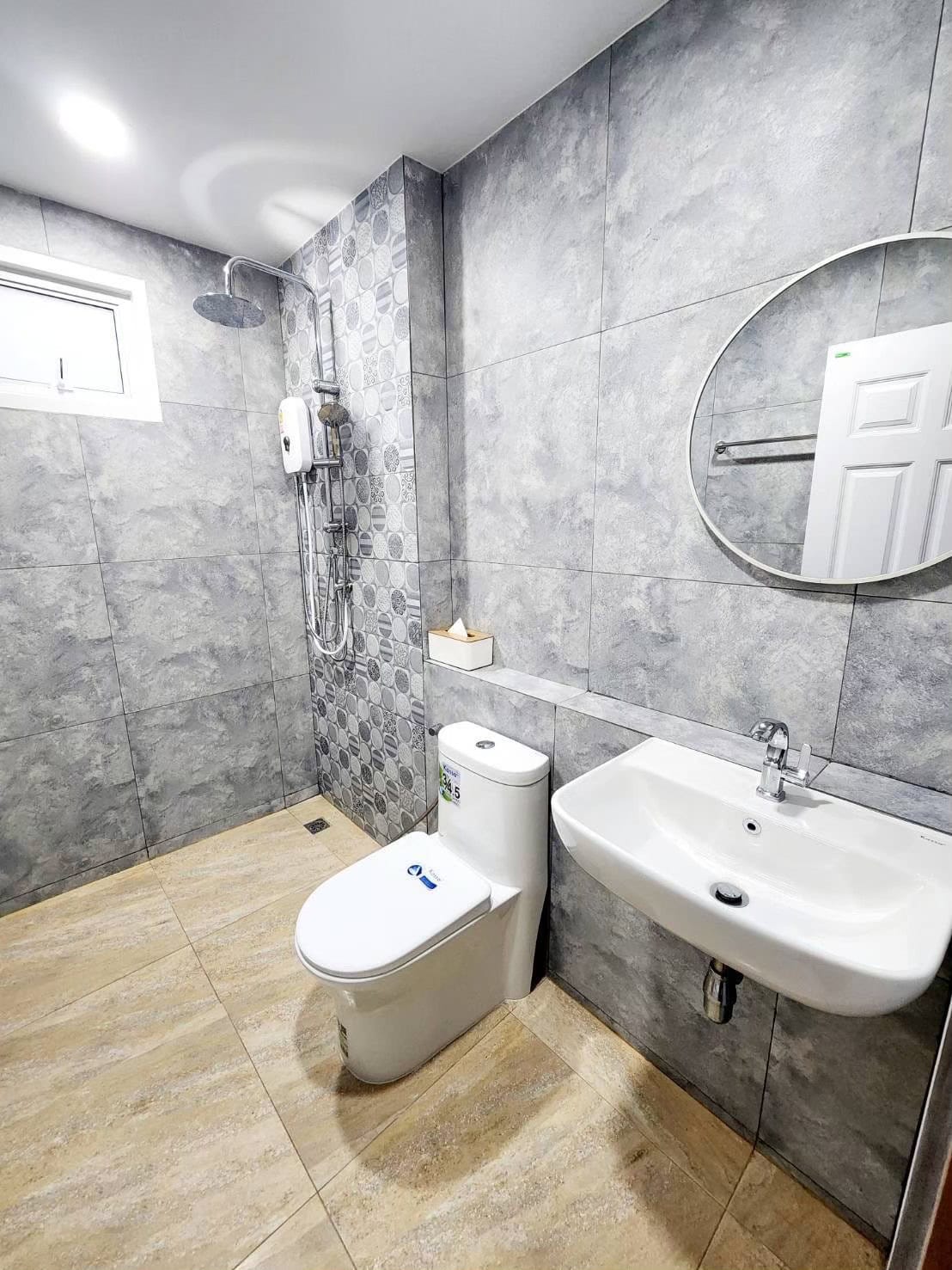 ห้องน้ำพร้อมเครื่องทำน้ำอุ่น ผ้าเช็ดตัว ไดร์เป่าผม