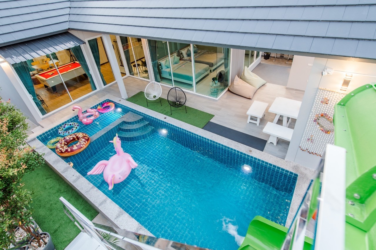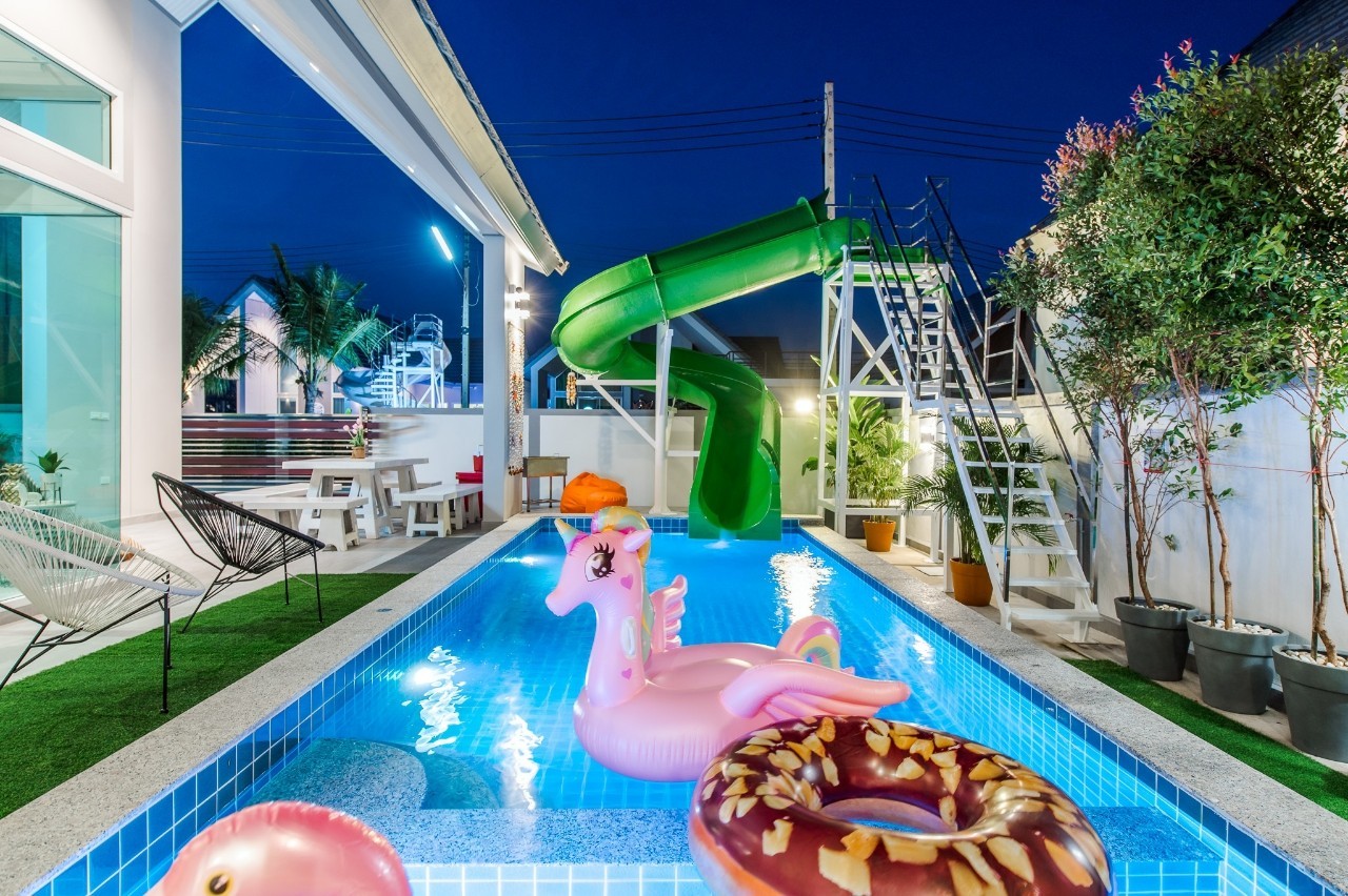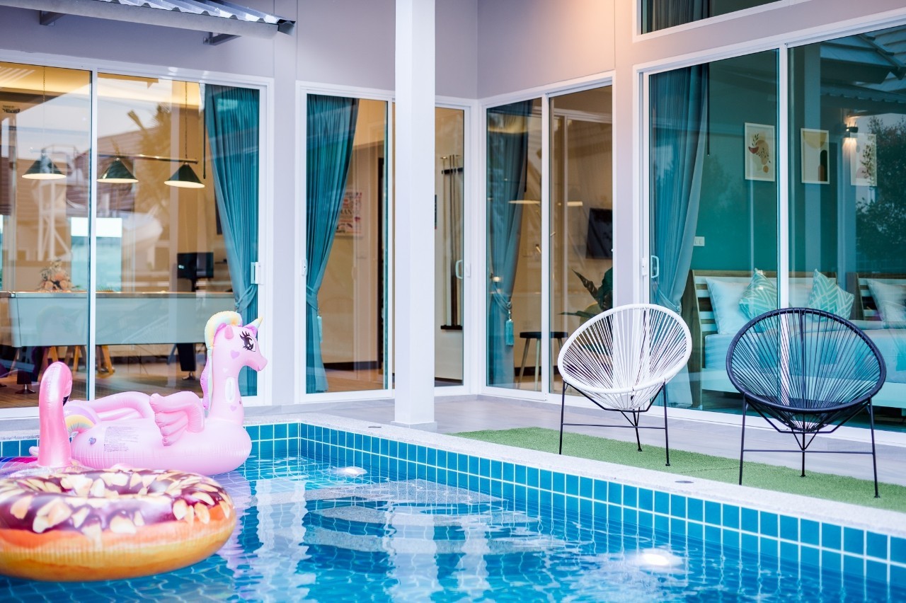 - งดส่งเสียงดังบริเวณริมสระว่ายน้ำหลัง 22.00 น./ในบ้านพักปิดประตูกระจกใช้เสียงได้ทั้งคืน