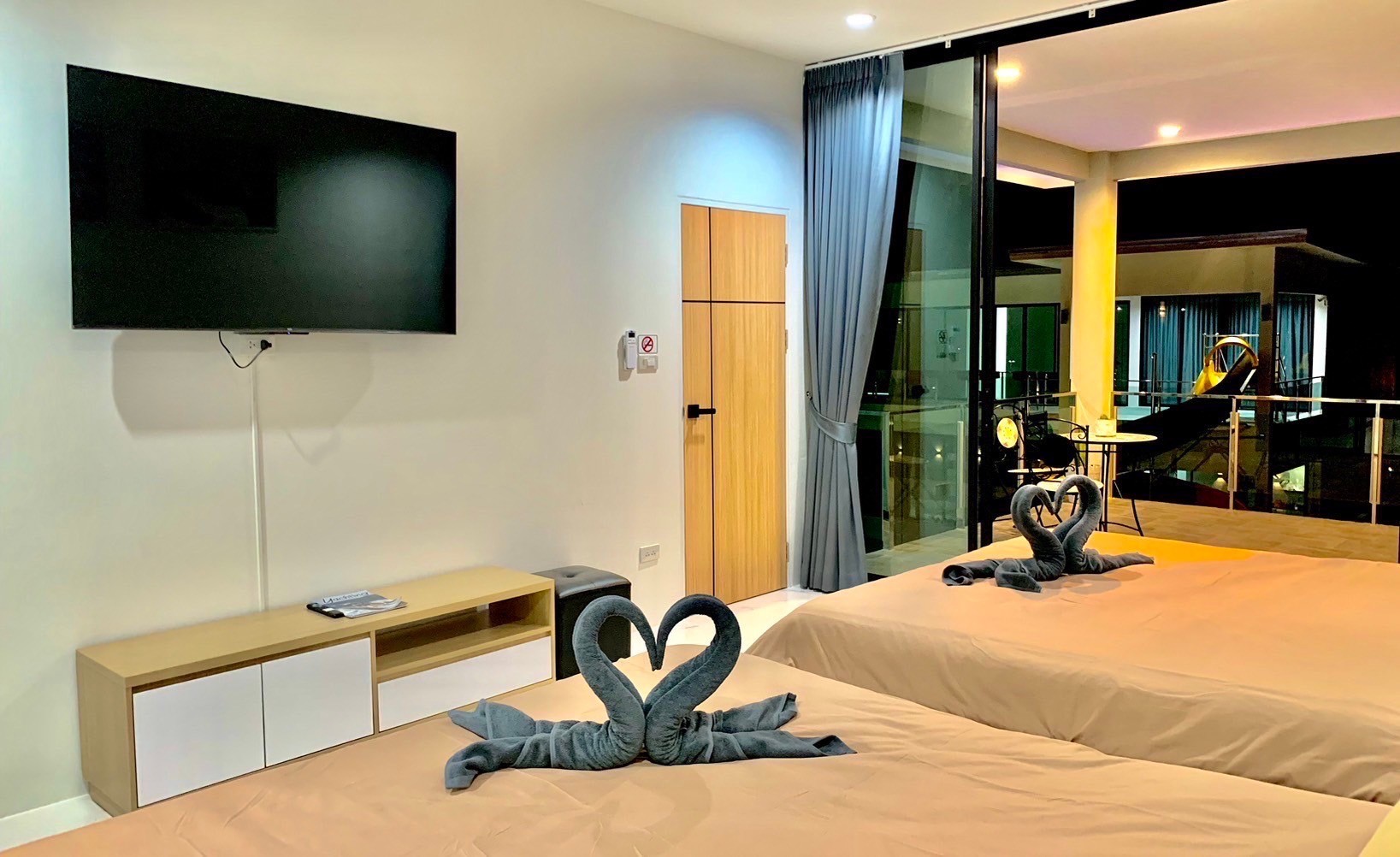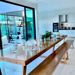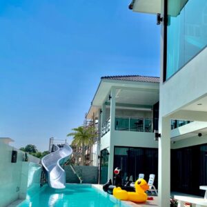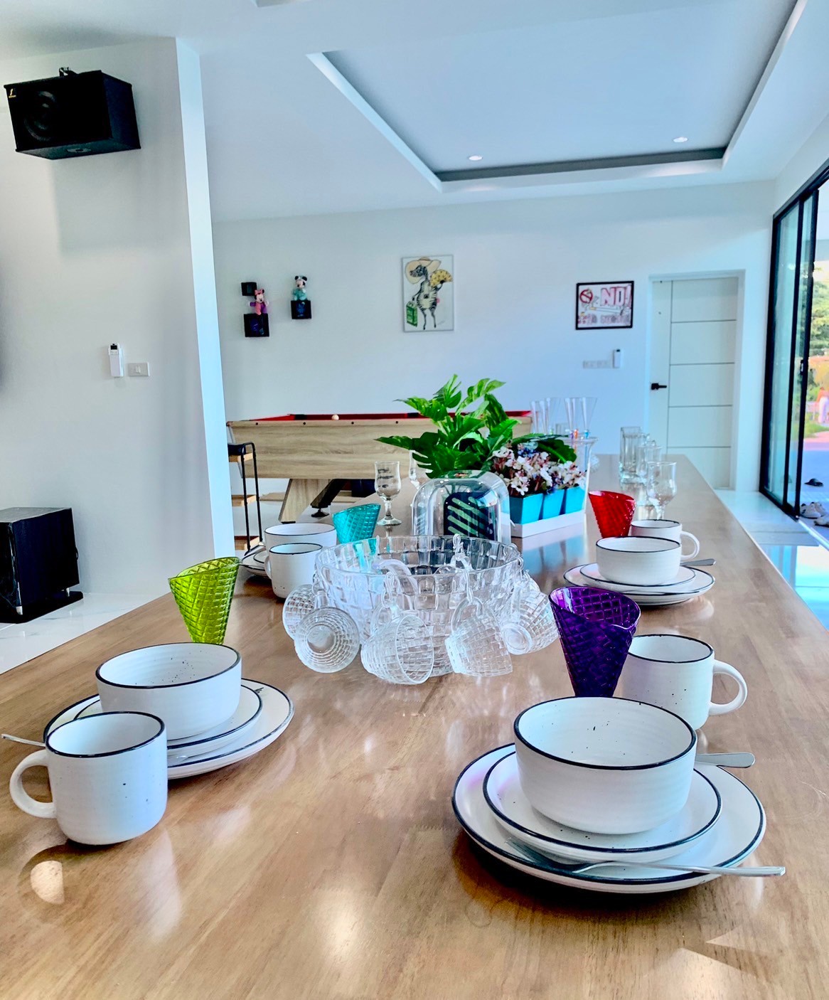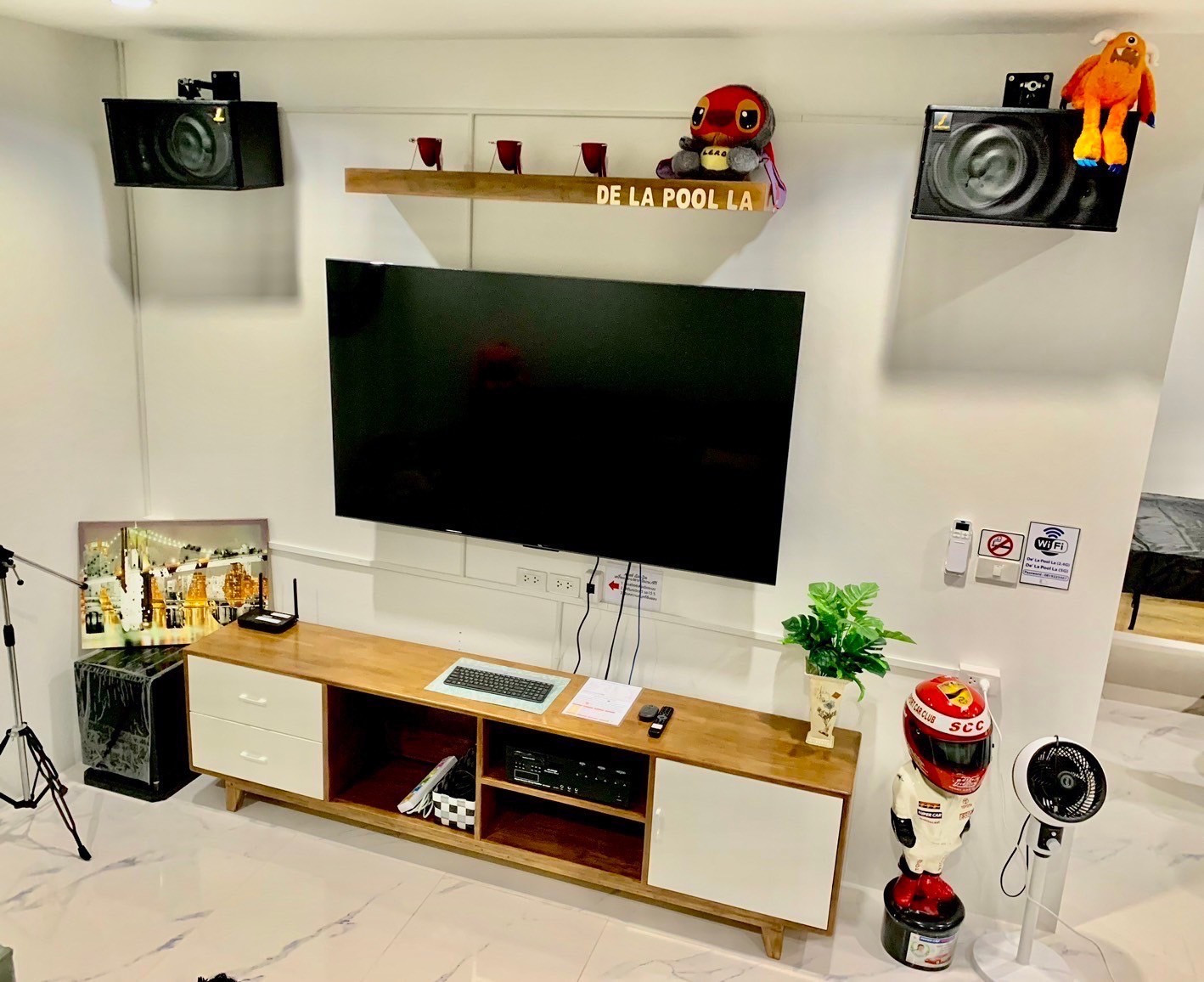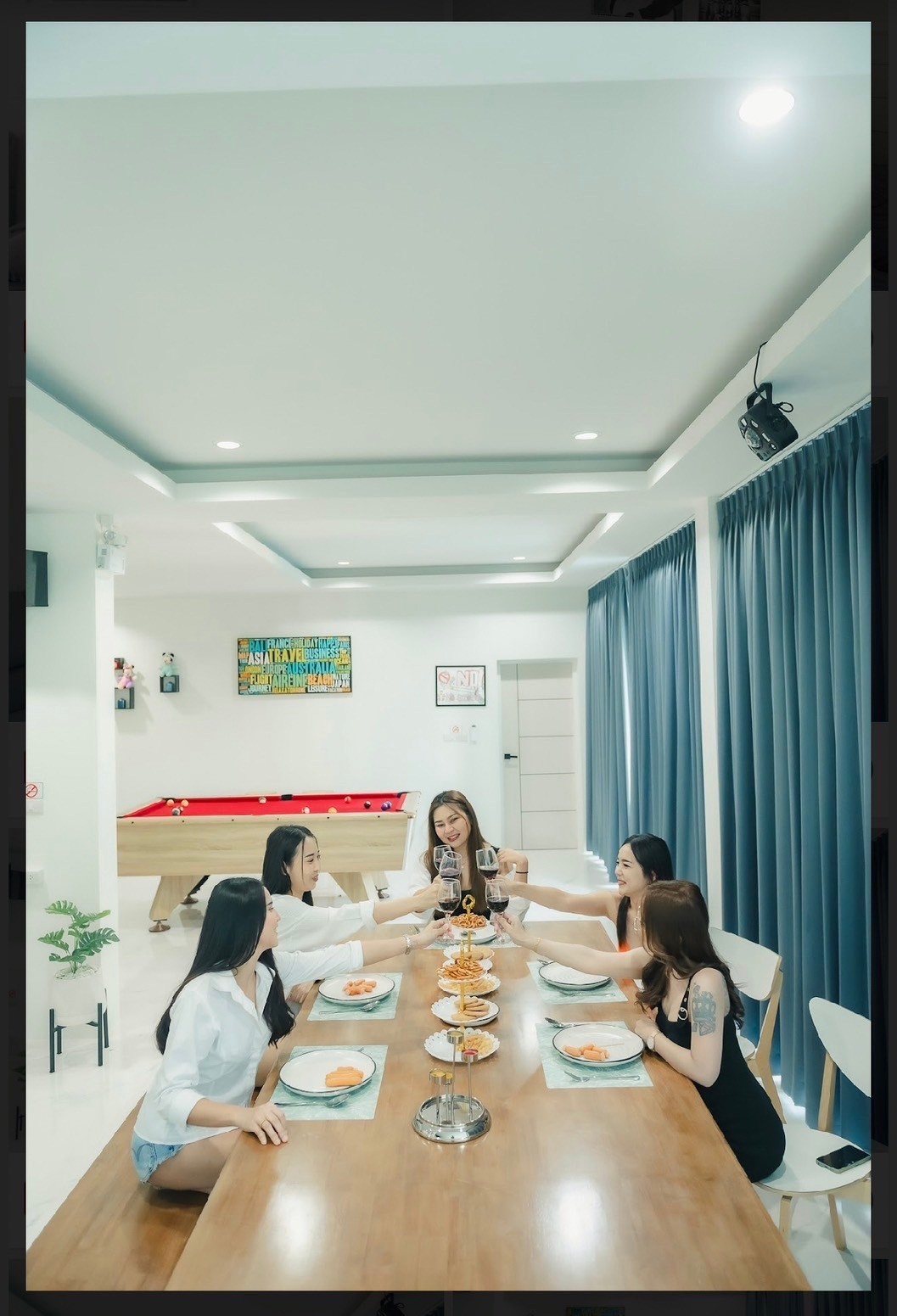 ห้องปาร์ตี้ คาราโอเกะ โต๊ะพลู โต๊ะอาหาร ฟิตเนส สระน้ำ พื้นที่รอบสระน้ำ ต่อเนื่องถึงกันทั้งหมด กว้างขวาง จอยกันได้ทุกความสนุก